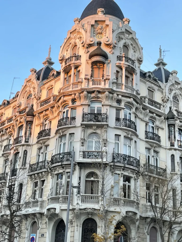 Beyond its palaces and plazas, Madrid’s character is also defined by the buildings where people live. Walking through the neighborhoods, you’ll often see brick‑walled apartment blocks with wrought‑iron balconies, colorful shutters, and laundry hanging in the sun which is a reminder of the city’s daily rhythm. These residential facades, sometimes centuries old, stand side by side with modern developments, creating a unique blend of tradition and contemporary life.